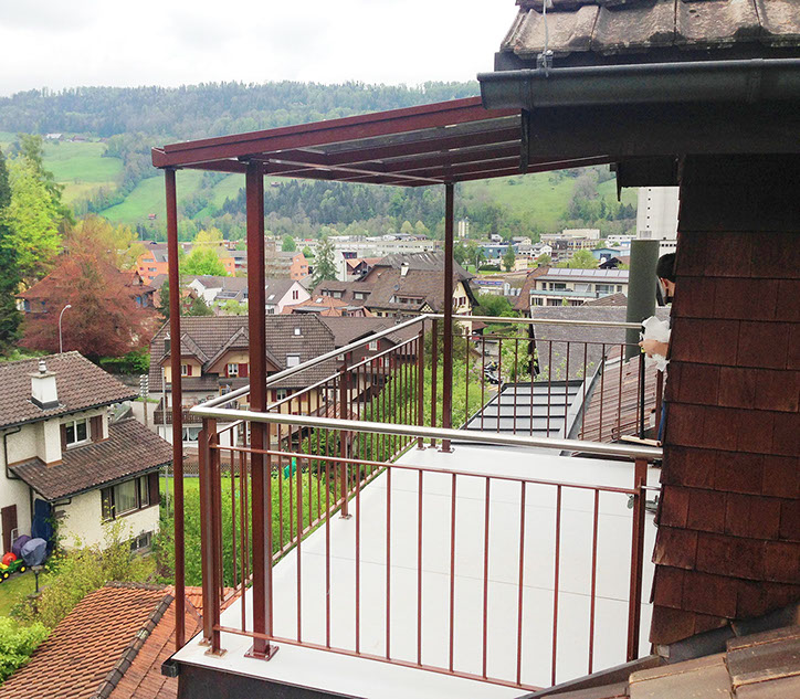Metall-Glasvordach mit integrierter Wasserrinne