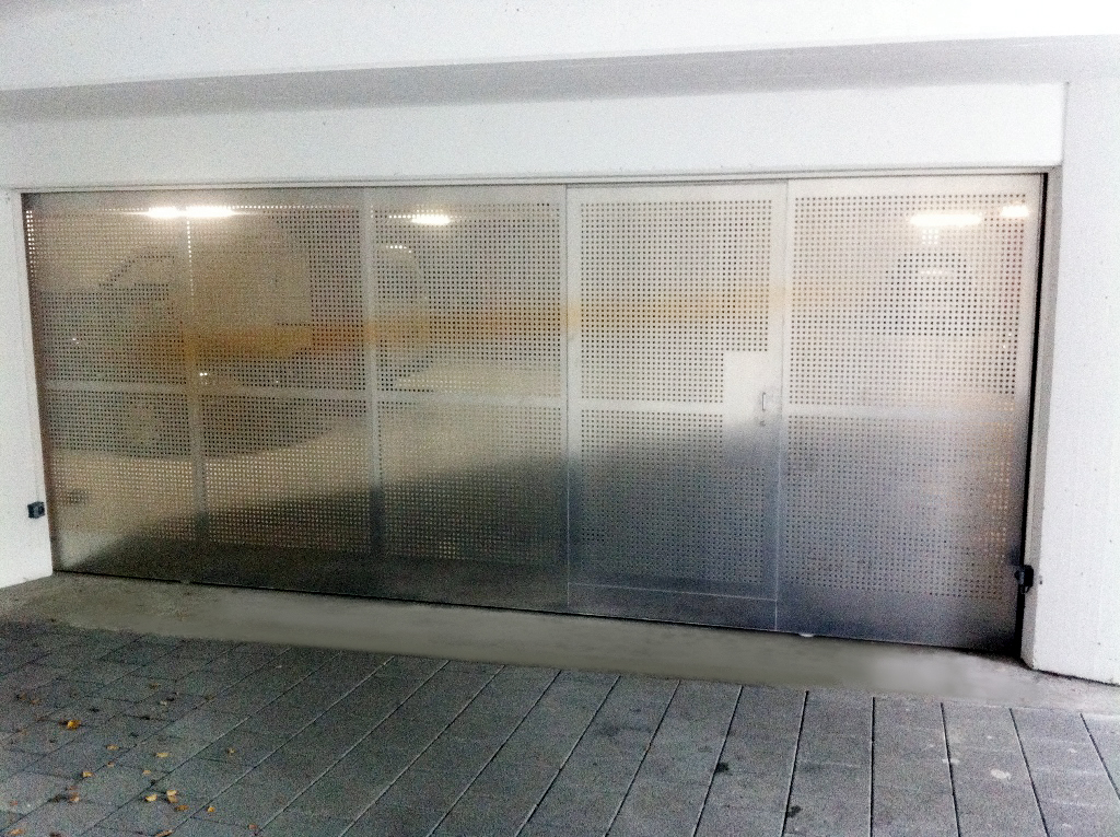 Einstellhallen-Schiebetor Lochblech mit Servicetüre