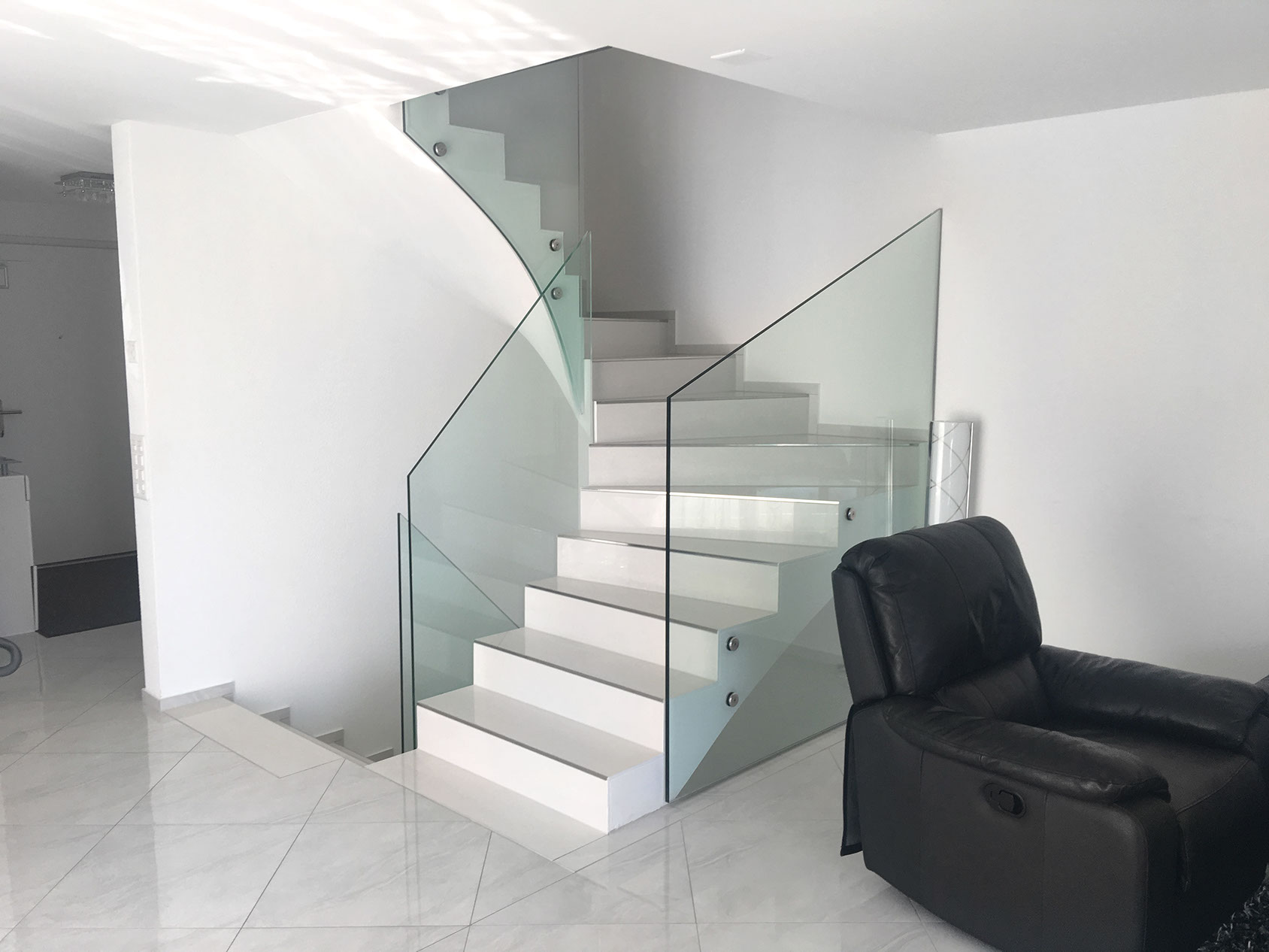Glasgeländer nach Treppenverlauf
