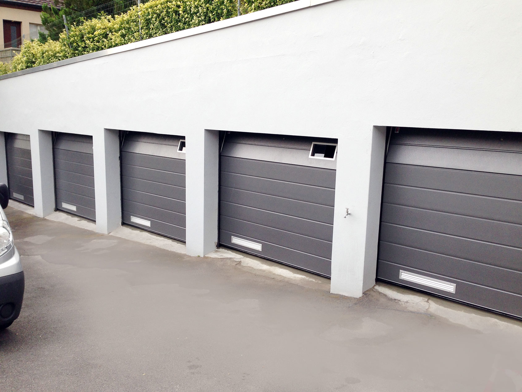 Einstellhallen-Sektionaltor mit Lüftungsgitter