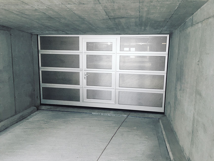 Einstellhallen-Sektionaltor mit Lüftungsgitter